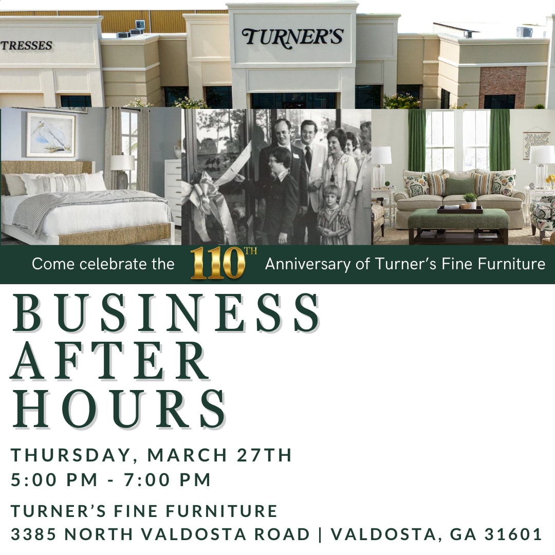 Join Turner's Fine Furniture in conjunction with Valdosta-Lowndes Chamber of Commerce for the 2025 March Business After Hours.
