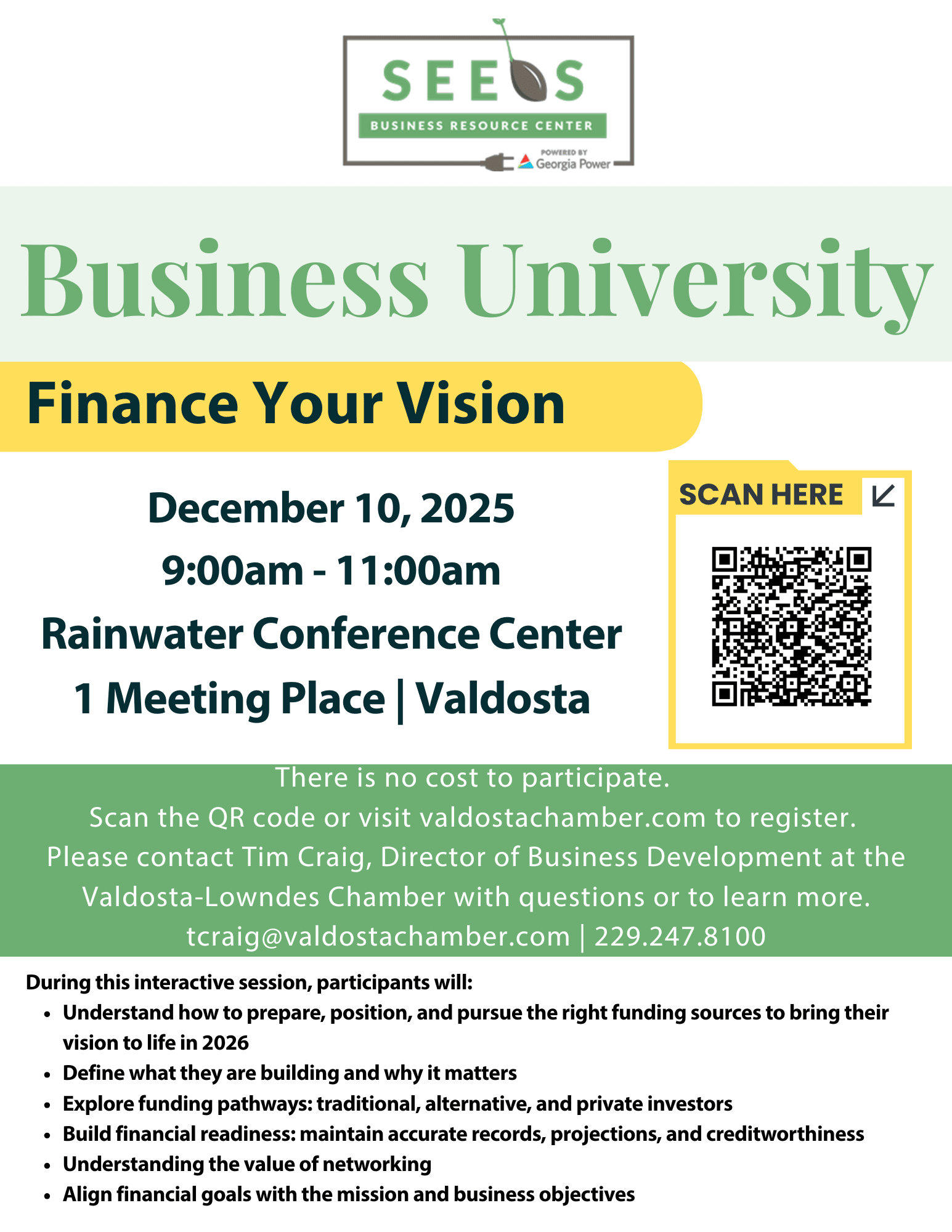 Join us for SEEDS Business University- Finance Your Vision Session Overview: During this interactive session, participants will: During this interactive session, participants will:
