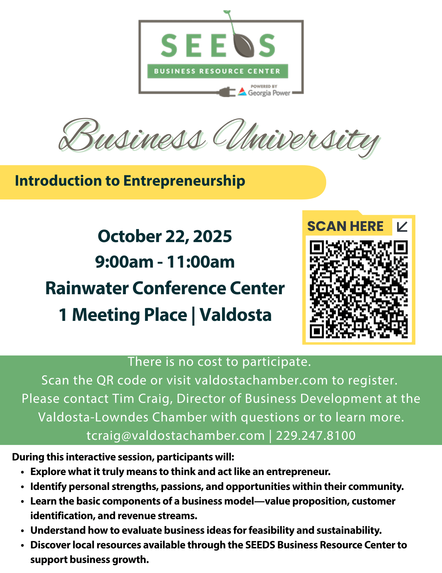 Join us for SEEDS Business University- Introduction to Entrepreneurship Course Description: Welcome to Introduction to Entrepreneurship, a two-hour session designed to spark your entrepreneurial mindset and equip you with the foundational tools to turn ideas into thriving ventures. Whether you’re dreaming of starting a small business or launching a side hustle, this class will guide you through the key principles of entrepreneurship—from idea generation to business planning and execution. Session Overview: During this interactive session, participants will: Explore what it truly means to think and act like an entrepreneur. Identify personal strengths, passions, and opportunities within their community. Learn the basic components of a business model—value proposition, customer identification, and revenue streams. Understand how to evaluate business ideas for feasibility and sustainability. Discover local resources available through the SEEDS Business Resource Center to support business growth. Through real-world examples, attendees will leave with a clear understanding of the entrepreneurial process and a roadmap for taking the next step toward business ownership or innovation. Learning Outcomes: By the end of this class, participants will be able to: Define entrepreneurship and explain its role in community and economic development. Recognize the mindset and traits of successful entrepreneurs. Develop a simple business concept and outline its potential market. Identify next steps and available resources for starting or growing a business. Target Audience: Aspiring entrepreneurs, small business owners, career changers, and community members interested in innovation and local economic growth. You don't need any prior business experience.