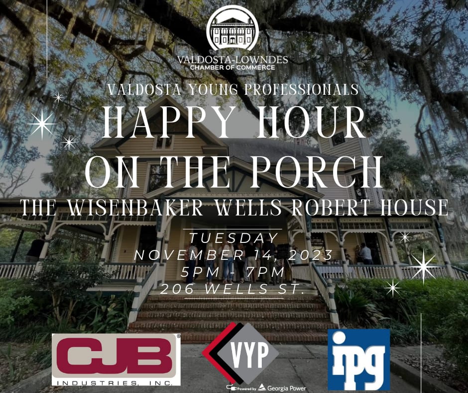 The Valdosta Heritage Foundation is currently restoring the oldest home in Valdosta! They are hosting the Valdosta Young Professional's November Happy Hour on the Wisenbaker Wells Robert House porch to showcase the progress of this historic home. Join us to hear more about historic preservation and what The Heritage Foundation is doing for our community. Thank you to CJB Industires and IPG Architects for sponsoring Happy Hour!