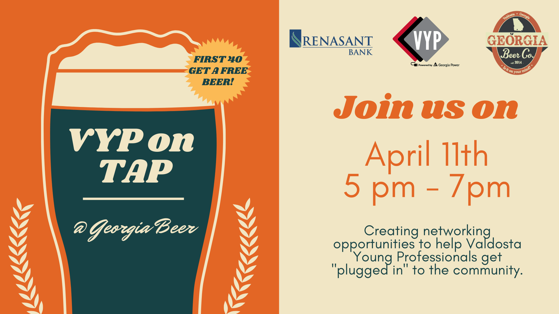 VYP on Tap is an evening of beer, great people, and a chance to network with other young professionals in the area. Register today and join us! The first 40 attendees get a free beer!