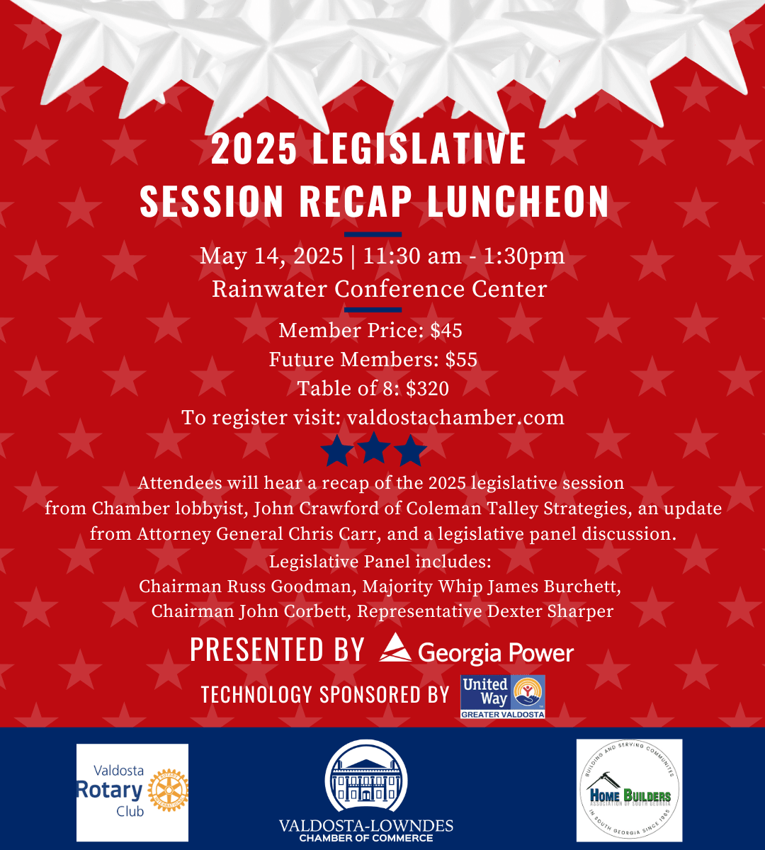 from Chamber lobbyist, John Crawford of Coleman Talley Strategies, an update from Attorney General Chris Carr, and a legislative panel discussion.